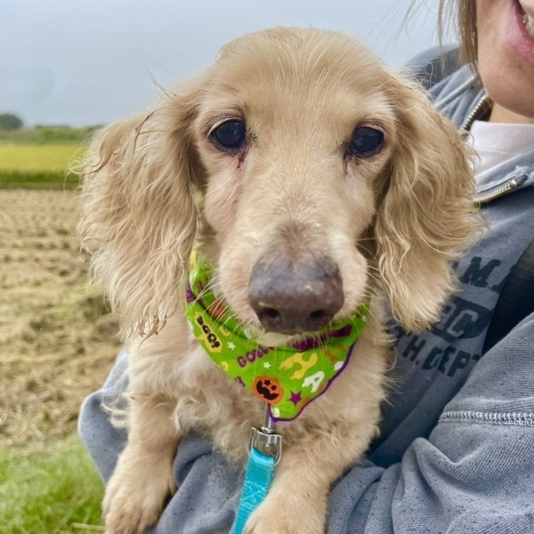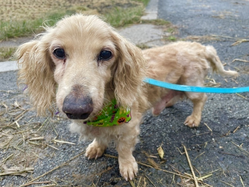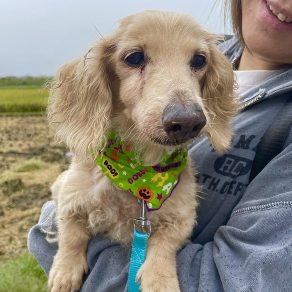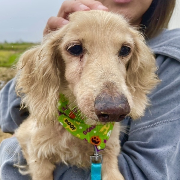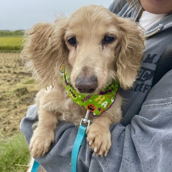 | 特徴(性格など) | ダックスフンドの碧(あおい)くん。 おっとり優しい男の子です。 普通に生活できていますが、肛門に腫瘍があります。 シニア犬で手術が難しいため、見守ってくださる方を探しています。 元気いっぱいで普通にお散歩もしており、もりもり食べます。 だっこすると安心するのか、うれしそうに腕の中でおさまっています。 早くゆっくり過ごせるおうちを見つけてあげたい気持ちでいっぱいです。 どうか家族に迎えてもらえないでしょうか。 すこしでも気になられましたら、まずはご連絡くださいね。 |