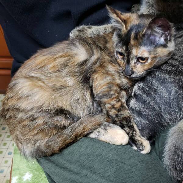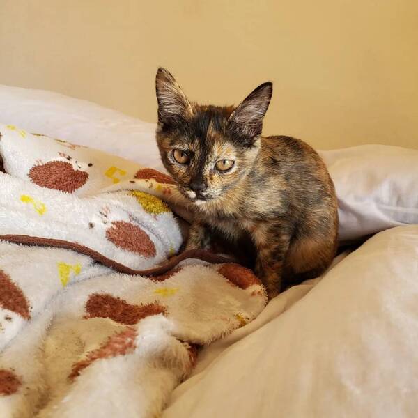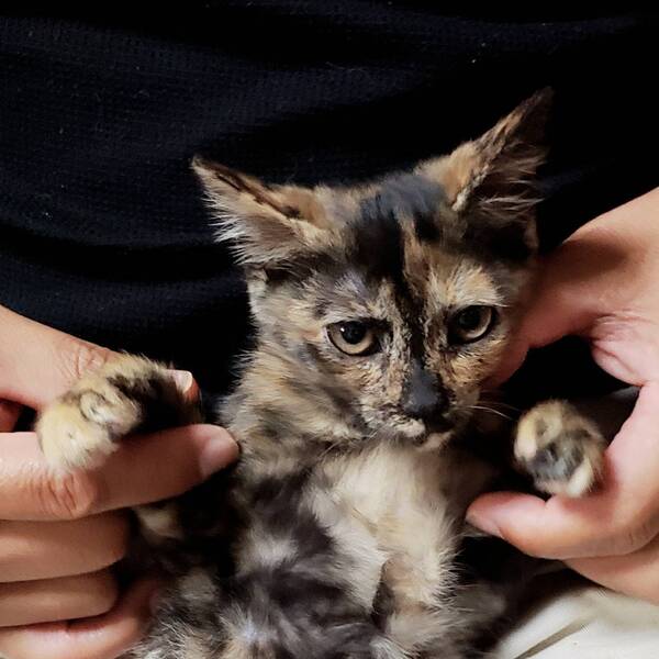 | 特徴(性格など) | 珍しいサビ柄です。 1人で上手に遊ぶ手のかからない子で、抱っこも手からご飯も食べてくれます♪ 良く人の動きを見ていて、遠慮したり甘えてきたりする賢い子です。 |