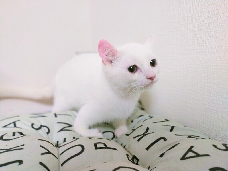 | 特徴(性格など) | 純血種アメリカンカールの子猫ちゃんです。色は真っ白でとても可愛いです 性格は優しくて、甘えん坊さんです。 抱っこも大丈夫です。 また、ハンディがあり、生まれつき前足が曲がっていますが、とっても元気で歩くことやトイレや食事など普段の生活に問題はありません。 ハンディをご理解頂き生涯寄り添って可愛がって頂ける方を募集しています。 宜しくお願い致します。 |