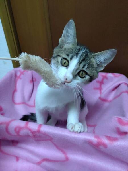 | 特徴(性格など) | キジ白 元気で飛び跳ねています。 甘えん坊で遊ぶのが大好き ウイルス検査陰性 便検査で感染が見られたので現在投薬、熱湯消毒等で 駆虫しております。 譲渡するまでには、完治した状態でお渡しいたしますので ご安心下さいませ。 |