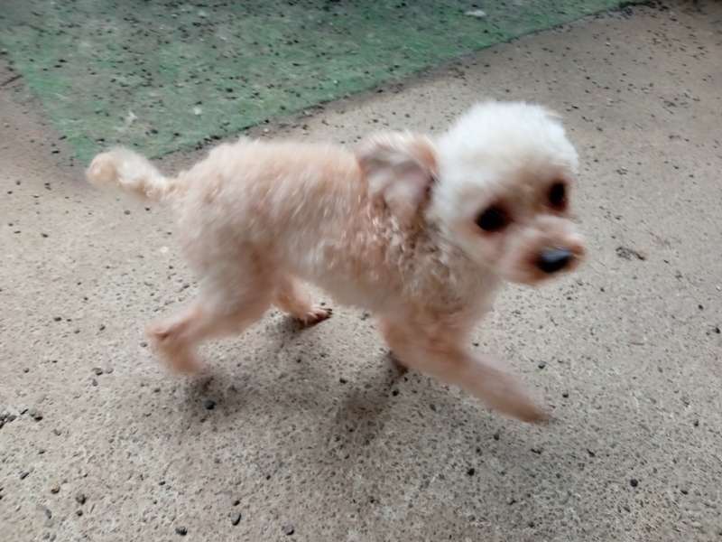 | 特徴(性格など) | アプリコットカラーの小柄な男の子です。 両足パテラ(膝蓋骨脱臼)で、左右共にグレード4と診断されています。 当初はガリガリに瘦せていて、3本足でヨチヨチ歩きでした。 治療を行い少しずつ食欲も出てきて運動時間を増やし、徐々に筋力体力が付いてきたのか4本足で小走り出来るまでになりました。 好奇心旺盛でよく動き回っています。 現在も時々後ろ左足を上げる事はありますが、日常生活には問題ない状態です。 ※パテラは手術しない限り良くなりません 室内トイレや散歩は練習が必要です。 留守番中や就寝中はケージ内で大人しくしています。 他の子とも仲良く出来ますが、体の大きい子、遊びが激しい子が相手だと危険だと思います。 プードルとしては吠えない方だと思います。 |