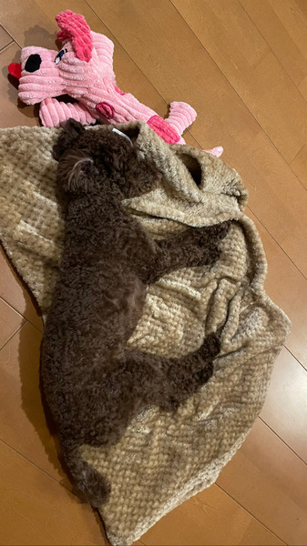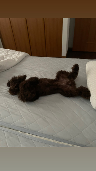 | 特徴(性格など) | 色:ブラウン 性格:温厚、マイペース 普段はおっとり、よくへそ天して寝てます。抱っこしてもへそ天します。 かなり頭が良く、トイレもすぐに覚え、芸もいくつか出来ます。 よく人をジーと観察しています。 遊ぶ時は元気に駆け回ります。他の犬や人に対しても友好的で、吠えたりもしません。 ホテルや保育園に預けた際には、"性格が良い"ととても褒められます。 |