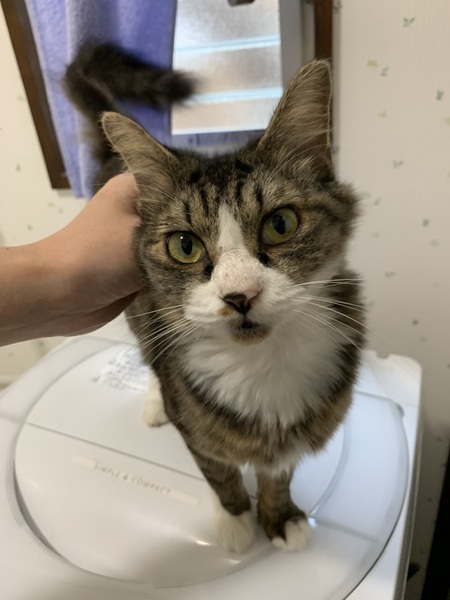 | 里親募集する理由 | 台風の前日に家の前で寂しそうに丸まっていました。耳カットもなくお腹を空かせていたので保護し、病院で診て頂いたところ少なくとも暫く外で暮らしていた子だろうということで、特に面倒をみてくれている人もいないようでしたので里親さんを探すことにしました。 (うちは既に多頭飼いで前述の通り色んな猫に威嚇されてしまうし、非常に甘えん坊なので1匹で飼ってもらったほうが幸せになれると思いました) |