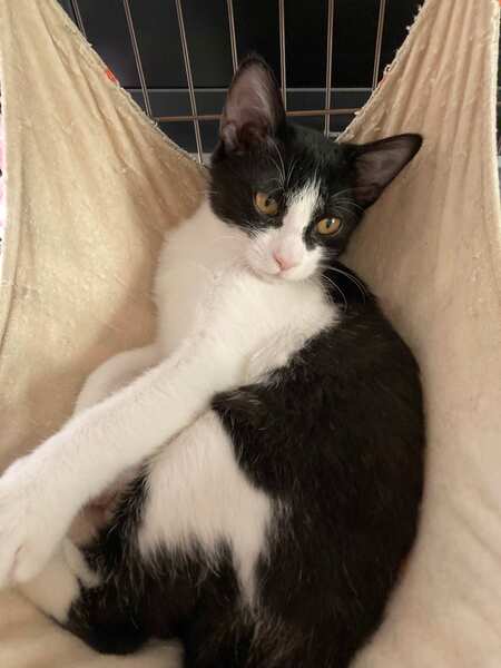 | 特徴(性格など) | 兄:黒キジトラ 元気でおもちゃを見つけると飛んできていつまでも遊んでいます。ものおじせず人懐っこい性格です。家族以外にもすぐ慣れて甘え、抱っこも喜んでくれます。 弟:白黒ハチワレ 兄とは正反対で、大人しく慎重な性格です。あまり大声で鳴くこともなくおもちゃでも静かに遊んでいます。家族にはおなかを見せてゴロゴロ喉を鳴らしますが、最初は緊張のため警戒するかもしれません。 |