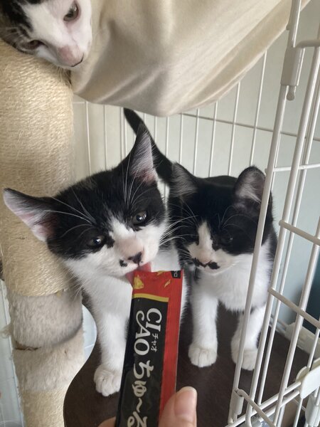| 里親募集する理由 | 【里親募集の経緯】 9月上旬、市内某所の住宅街にてお母さん猫とお兄さん猫と一緒にいたところを見つけ、 子猫4匹(雪印メグちゃん・よつ葉くん・明治ちゃん・森永くん)を保護しました。 (お母さん猫はTNRしました。) 現場にはまだお兄ちゃん猫の保証牛乳君がいます。 先ずは、子猫達のずーーーーーっとのお家が決まらないと助けてあげられないので、優しい里親さんを募集致します。 どうぞ宜しくお願いします☆ |