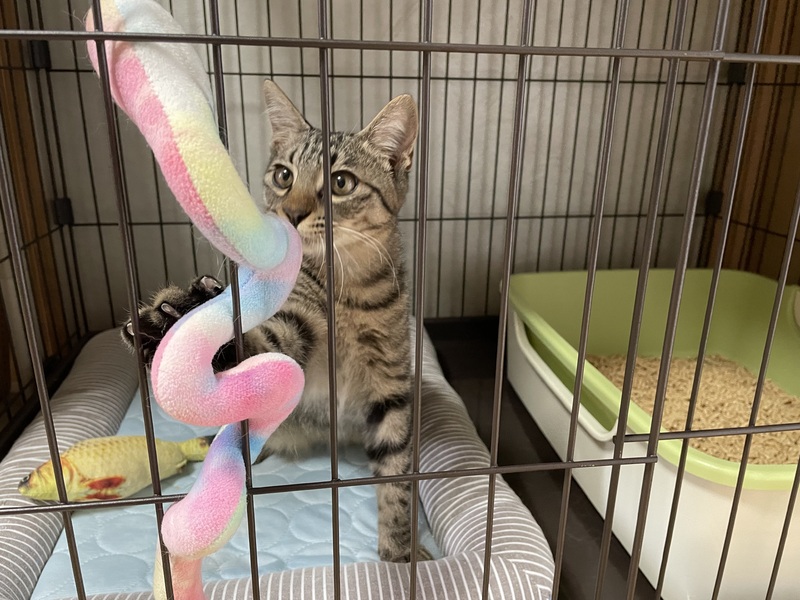 | 特徴(性格など) | ベタベタ甘々のキジトラ猫 歩けないくらいに ひっつきもっつきの男の子です すごく甘えん坊で 寂しがりやでもあります 人がいてくれればご機嫌さんです |