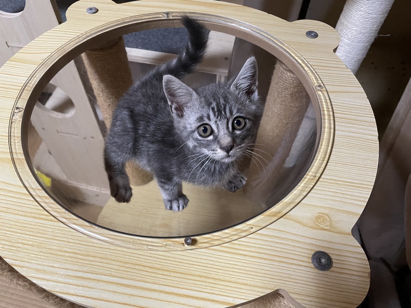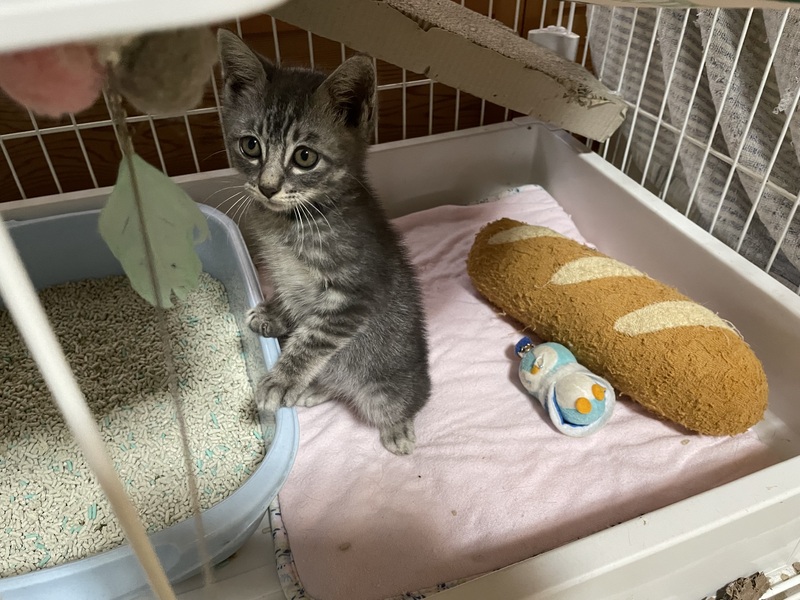 | 特徴(性格など) | キレイなグレーのサバトラ男の子 とても ひょうきんで 見てるだけで笑える しぐさがとても可愛い子です やんちゃで食欲旺盛な元気モリモリ君です |