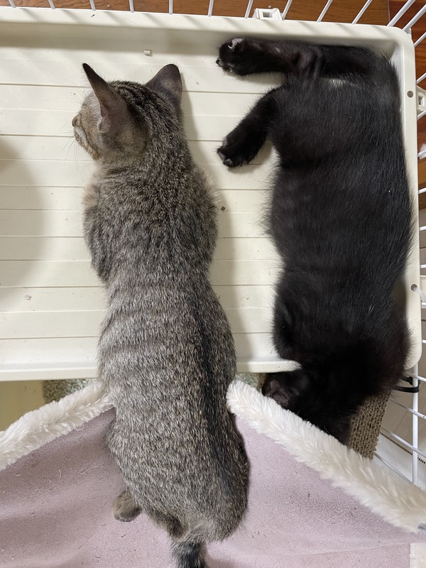 | 里親募集する理由 | TNRを進めてた現場で ガリガリに痩せた子猫2匹を保護しました。 お母さん猫は避妊してリリースしました。 親子で栄養状態が悪く 過酷な生活をしていたんだろうと思います。 親子で真菌にもなっておりやっと治療も終わり完治したので のんびりと過ごせるお家を見つけてあげたいと思ってます。 どうぞ宜しくお願い致します。 仲の良い兄弟なので 可能であれば2匹一緒でのお迎えもご検討いただければ嬉しいです。 |