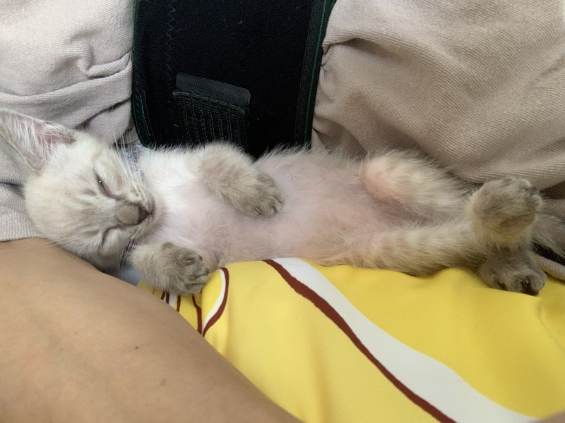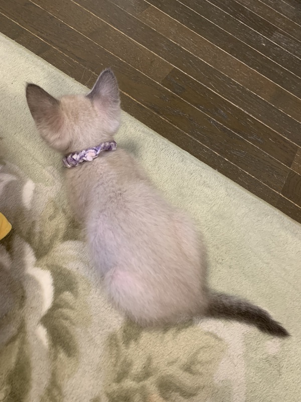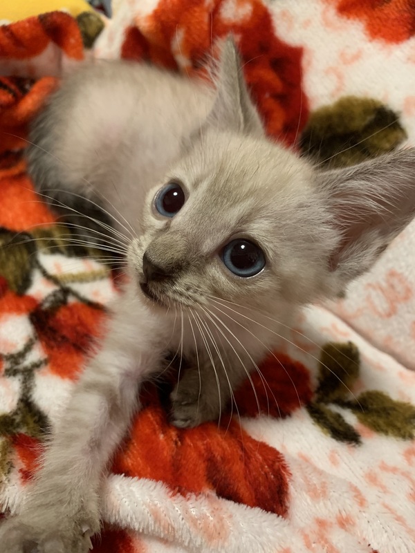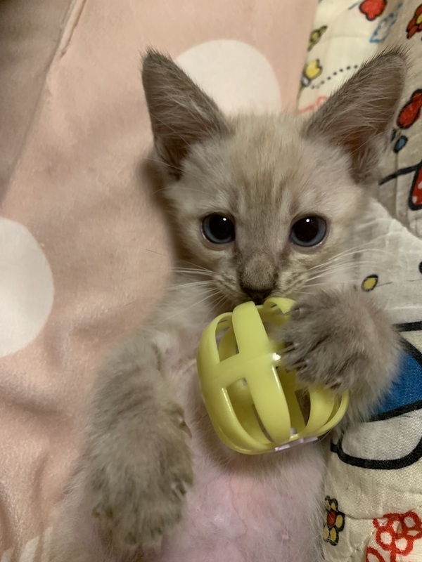 | 特徴(性格など) | 性格 非常に甘えん坊さん❤️寝る時は大人猫や人間と一緒に寝ます ケージには保護当初入れてましたが、今はリビングでフリーにしています。元気に走り回って、おもちゃでもよく遊びます?食欲旺盛です♪小柄な男の子ですが、体重も日々増えています? 瞳はブルー綺麗な濃いめのブルーです?毛色はシャム系です、今は薄めの毛色ですが、成長と共に毛色が濃くなるかも知れないし 薄いままかも知れません。我が家の飼い猫達ともワチャワチャ遊んでいますので、猫嫌いではないです?歯が痒くなってきてるみたいですカミカミし始めていますので、手?️をおもちゃにしないで必ず猫じゃらしなどを使って遊んであげて下さい。手?️をおもちゃにしてしまうと噛み癖がつく場合があります。まだ人間の食べ物には興味がありませんがこれから少しずつ興味を持つ時期がきます。人間の食べ物は絶対に食べさせない様に気をつけて下さい。塩分が多いですし、味も濃いので、覚えてしまうと本来食べなくてはならないご飯を食べなくなってしまいます? 掃除機は苦手ですが、雑巾掛けをするモップは好きです?おもちゃと勘違い!?している様です笑 ‼️ 脱走が1番怖いです!完全室内飼いを徹底して下さい。ハーネスを付けお散歩させる事もおやめ下さい。車の音などに驚きパニック?になりハーネスをつけていても暴れて外れてしまい逃げてしまう可能性があります。放し飼いしたい・お散歩させたい方は申し訳ございませんが譲渡は出来ません。猫ちゃんは完全室内飼いで可哀想ではありません。 |