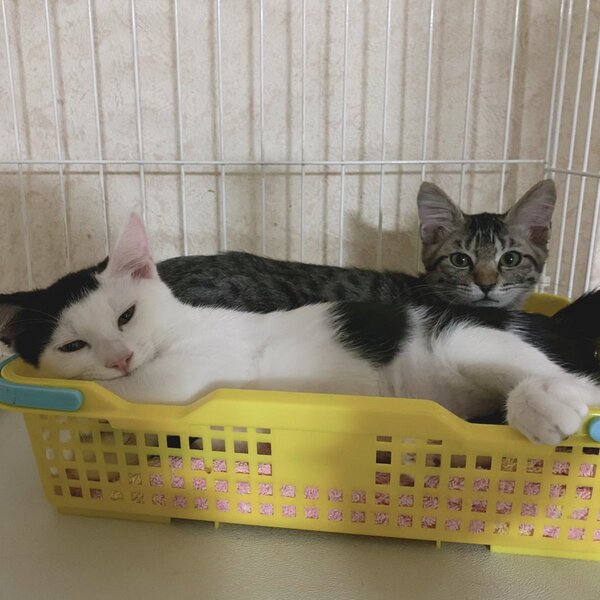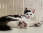 | 特徴(性格など) | 白黒柄で前髪カットがずれたようなかわいい柄です(=^・^=) ナデナデは好きなようでゴロゴロ言います。 最近は目が合っただけでゴロゴロ言うようになりました。 兄妹の中で一番カラダが大きく、他の子に比べて遊ぶ時はダイナミックに遊びます。 |