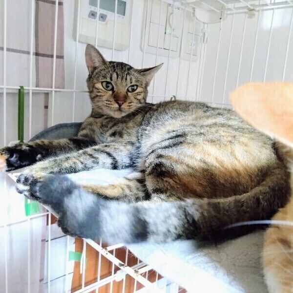 | 特徴(性格など) | ◆やくすぎ子ちゃん ナデナデ好きマイペースキジサビ女子 ○鹿児島県内で保護されました。 ○年齢不明(2023年10月時点で1歳以上)のキジサビ柄の女の子です。 ○尻尾は真っ直ぐです。 ○人慣れしていてナデナデ好きです。 ○同じく里親募集中で一緒のケージのちゃかもりの後ろに隠れがちですが、嫌なことは嫌って主張できる子です。 ○マイペースそうです。 ★ワクチン2回済み。不妊手術済み。 ★猫エイズ、猫白血病ともに陰性。 ☆単身のかたはご相談ください。 ★★お見合いを設定することも可能です。まずはお申込みください★★ |