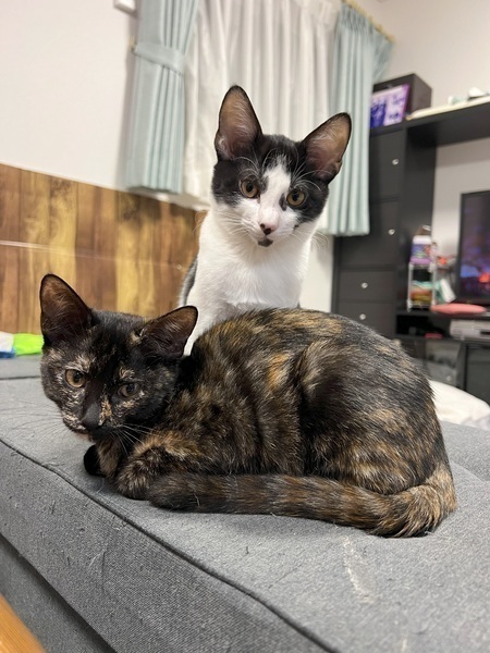 | 特徴(性格など) | 【仮名】おまさちゃん 【性格】写真じゃ伝わり切れない!かわいいおまさちゃん♪ ぐいぐい来ないのに、いつの間にかそばにいてくれる♪癒しのおまさちゃん♡ 左の前脚後ろ足の先っぽが茶色で右の前足後ろ足が黒(笑) 靴下履き間違えたみたいな模様です 膝そっと乗ってくるので可愛いです♪ でもおもちゃ遊びは大得意でお気に入りのおもちゃで遊ぶと 本気が出ちゃいます!誰にも譲りません♪ 爪切り、入浴、添い寝もOK! まだまだ色々学習中なので兄弟の忠吾くん、五郎蔵くん 平蔵くんとのペアでのお迎えを希望します! ※1ピキ譲渡応相談 |