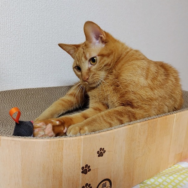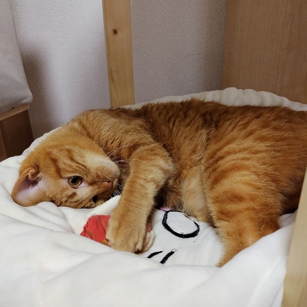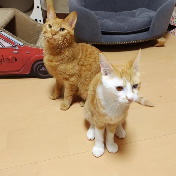 | 特徴(性格など) | 推定2023年6月15生まれ、茶トラの仮名ツグちゃん♂です。 ツグちゃんは、人馴れ修行修了証書を授与された(笑)食いしん坊な男の子! シャーッやうぅーや、手も口も出てとってもおっかなかったツグちゃんですが、当方宅へ移動して約6ヶ月、人間との距離がものすごく縮まっています♪ ご飯大好き! ご飯の用意を始めると100%の確率ですり寄ってきて、膝に乗ってきます。 ご飯の後も、膝に乗ってきます。 要はお膝大好きな男の子に変身しました(笑) 抱っこも嫌いではないようです。 ですが、私が動いているときはまだたまーに怖いらしく、距離を取ることがあります。 遊ぶのも大好き! ひとりでも楽しく遊べますし、12月から当方宅の保護猫に仲間入りした6ヶ月齢のルチルくんには、頼りになるお兄さんぶりを発揮しています♪ そしてお気に入りのおもちゃを私に運んでくることを覚え、人間とも遊んでくれるようになりました!! わんこさんのように(笑)取ってこい、ができるので、幾度となくツグちゃんにお気に入りのおもちゃを投げて遊んでくださる方を募集しています(笑) 毎晩添い寝もしてくれます(萌) 馴れれば平気かもしれませんが、成猫にも唸ってしまうため、現段階では先住動物のいないご家庭が向いているように感じます。 そんなわけで、今現在ツン10%、デレ90%といったところでしょうか。 今もたまに顔を出す警戒心の強さは、お外時代のツグちゃんの命を繋いだとも言えますので、ある意味ツグちゃんの勲章でもあります!(ロードキルの多い現場です) 時として怒りんぼになる可能性のあるツグちゃんの行動も慈しみ、日々の成長を急かさず温かい目で見守ってくださるご家族さまに見つけていただけることを、切に願っています。 また、手や口が出てしまうことがゼロではないため、小さいお子様のいるご家庭には向かないと思います。 ※現在、手や口が出る行動は私には見られなくなりました。ですが、里親様宅に移動しましたら出る可能性があります。そこをよくご理解いただいた上で、ご応募いただけると幸いです。 同時募集していますルチルくん(茶白♂)とのペアでのご縁も大歓迎です。 里親様には、目に見える形での脱走防止対策の徹底(よろしければ私も一緒に考えます!屋内・換気する窓・玄関の写真や間取り図をご持参いただけると大変大変うれしいです。具体的なアドバイスをさせていただきます)と日々の健康管理、誤飲(おもちゃへの食いつきが他の子よりも激しいので、ツグちゃんは特に色々なものに誤飲注意だと感じています)や感電等の家庭内事故を防ぐため安心安全で清潔な住環境を必須でお願いしています。 |