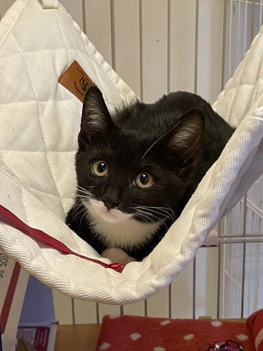 | 特徴(性格など) | 黒白猫です。すこしシャイですがなれればゴロゴロ喉を鳴らすかわいらしい仔猫です。 | ||