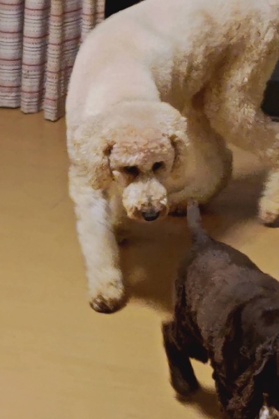 | 特徴(性格など) | スタンダードプードル 23.5kg スタンダードプードルの飼育経験者優先となります。 大人しく穏やかな人間が大好きな子です。 ただ保護されて間もないため、少し怖がりです。 現在、預かり宅で家庭生活、散歩、トイレシートでの排泄を勉強しています。 日に日に甘えん坊になってきています。 |