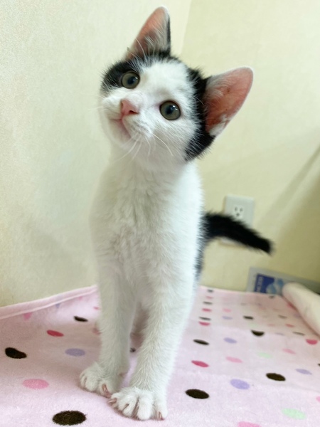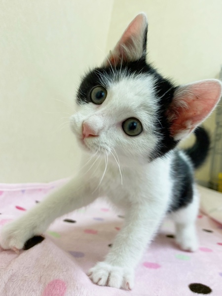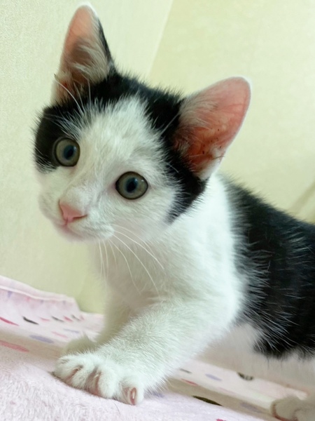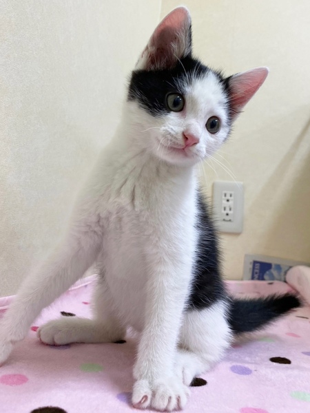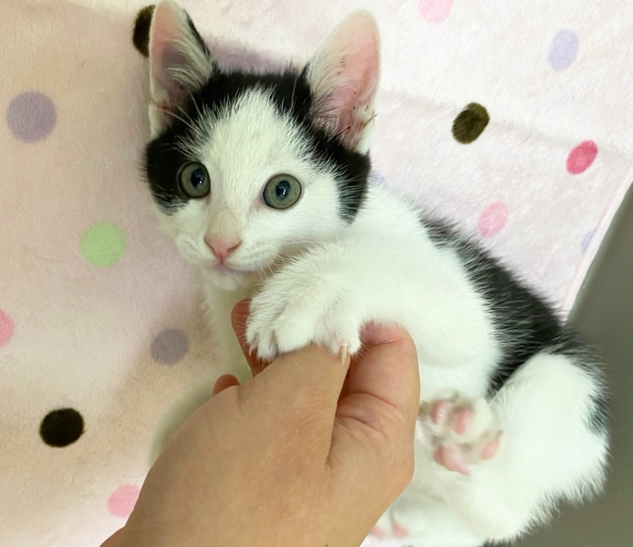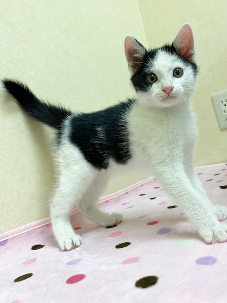 | 特徴(性格など) | ✳︎特徴 おでこが広めのハチワレくんです。第一印象がちいかわに登場してくる「ハチワレ」に似てる...!って感じです。お顔のほとんどが白毛なのでお鼻のピンク色が際立って可愛さ度がアップしています。肉球もピンクでぷにぷにしがいがありそうです!しっぽは少しだけ曲がったちょいカギしっぽです。センターのスタッフさんによく面倒をみてもらっているせいか、全体的に丸み度も高めです。栄養満点ボディ! ✳︎性格 授乳からずっと人の手で育てられているので、甘えん坊でスキンシップ大好きです。きっとたくさん声をかけてもらっているのか、カメラ目線バッチリの可愛いお写真がたくさんあります。1ニャンで保護されましたが、センター内で他の猫さんとも仲良く遊んでいます。 これから4ヶ月くらいまでの間は、子猫さんの社会性が育つ時期になります。取っ組み合いの喧嘩をしながら、甘噛みを覚えたり、追いかけっこしながら、動体視力を養っていきます。 できれば、2頭一緒に迎えてくださるお宅や、一緒に遊べる若い先住猫さんがいるお宅、お留守番があまり長くなく猫さんと一緒に遊ぶ時間が十分取れるお宅を優先させていただきたいと考えております。 |