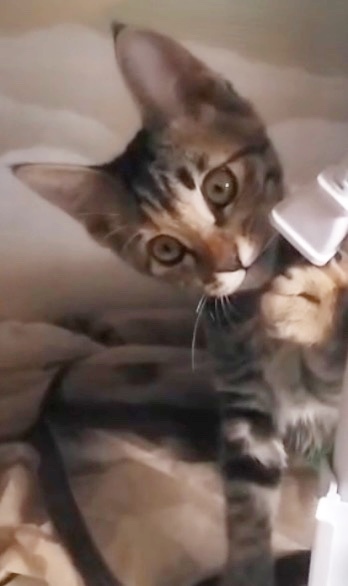 | 特徴(性格など) | ✳︎特徴 お顔と手足はキレイなタビー柄(シマ模様)が出ていますが、背中部分はタビーとサビ柄が混ざったような変わった毛色です。あまり見かけない珍しい毛色です。尻尾は真っ直ぐです。この毛色は、三毛さんと同じくほぼ女の子です。まろっぽい眉がかわいくて個人的にチャームポイントです。 ✳︎性格 どちらかといえば、兄弟より姉妹のほうがやんちゃで元気に遊んでいます。転げ回ってる動画がありました!撮影時、トイレをしているときにあまり砂をこぼさないで用を足していたのがとても印象的だったと撮影に立ち会ったボラさんが仰っていました。これはかなりポイント高いですー!と(笑)。オトナになったら、もしかしたら盛大に砂かきをするかもしれませんが、ご了承ください。←砂かきするのがフツウです。 これから4ヶ月くらいまでの間は、子猫さんの社会性が育つ時期になります。取っ組み合いの喧嘩をしながら、甘噛みを覚えたり、追いかけっこしながら、動体視力を養っていきます。 兄妹のうち、メンズの2兄弟くんに面会が決まっており、仲良しの姉妹が待機をしています。できれば、姉妹で2頭一緒に迎えてくださるお宅を優先させていただきたいと考えております。 |