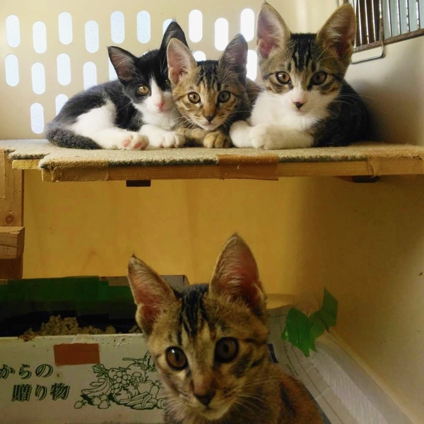 | 里親募集する理由 | 4兄妹が段ボール箱に入れられて遺棄されていたそうです。犯罪と言われていながらも、この相談はとても多く寄せられており、まだまだ絶えません。人見知りが全くなく、健康状態も悪くなかったので、室内で飼育されていたと思われます。現在は発見したボラさんが面倒を見てくださっておりますが、高齢の上自宅にも飼い猫がいるため、引き取って面倒を見るのが難しいとのことで相談が入りました。 現在は北九州市で待機しています。保護猫さんに理解のある方が多い東京近郊で里親さんを探しております。 |