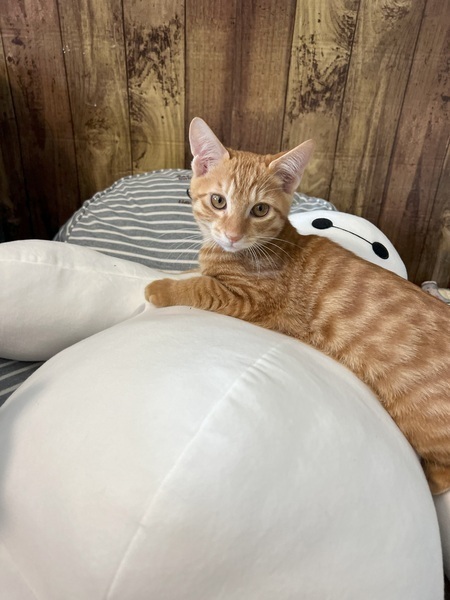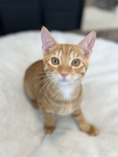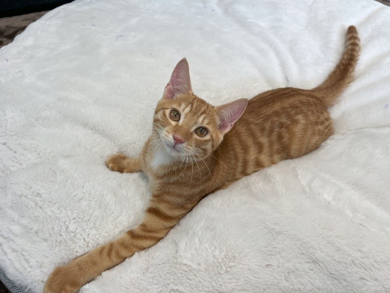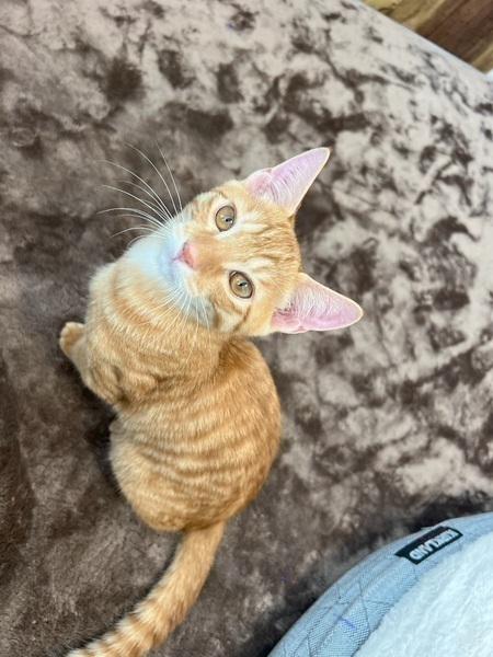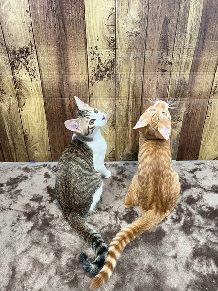 | 特徴(性格など) | 【仮名】木村 忠吾くん 【性格】王道茶虎!忠吾君可愛さアピール上手の忠吾くん♪ 茶色の縞もくっきり、長いしっぽの忠吾くん♪ あざとい笑顔でアピールしてきます♡ おもちゃ遊びは大得意で興奮するとしっぽが 特大エビフライになっちゃいます♪ 兄妹みんなよく食べ好き嫌いのないいい子です! 爪切り、入浴、添い寝もOK! まだまだ色々学習中なので兄妹の平蔵くんとの ペアでのお迎えを希望します! ※1ピキ譲渡不可 |