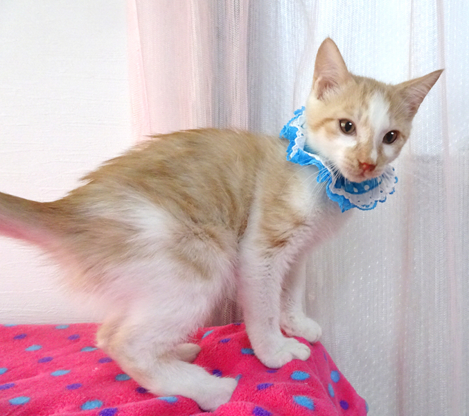 | 里親募集する理由 | 飼えなくなった飼い主から乳飲み子を救出して育てました。 乳飲み子から育てたので、大変人慣れしています♪ 猫を飼うのが初めての方でも大丈夫です♪ 走っても大丈夫なペット可のお住まいで、家族の一員として生涯大切にして下さるご家族を募集しています。 まだ小さいので猫だけのお留守番が長時間でないご家族を希望します。 ご高齢の方は後継者のおられる方を希望いたします。 |