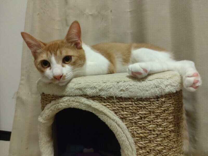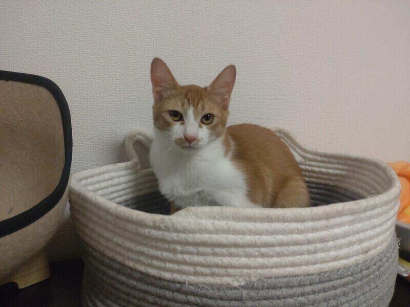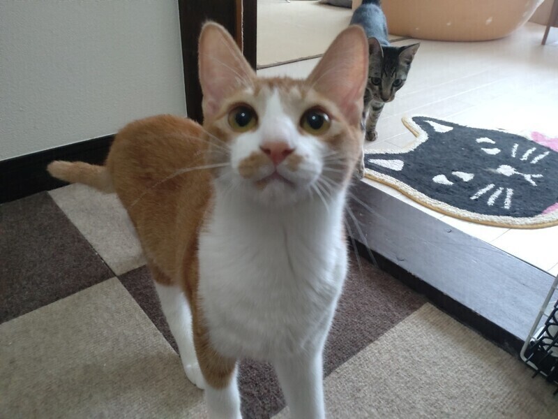 | 特徴(性格など) | 2023.3.15生まれ(推定) 毛色:茶白 とっても甘えん坊で食いしん坊な男の子♡ 4兄妹のリーダー的存在で、一番体も大きいです。 初めての人には最初だけ緊張してしまうこともありますが、 足元にスリスリ、歩く時もついてきます♡ 抱っこされても、ぐて~んとしてます。 好奇心旺盛で、オモチャで遊ぶのも大好きなかわいい男の子です♪ |