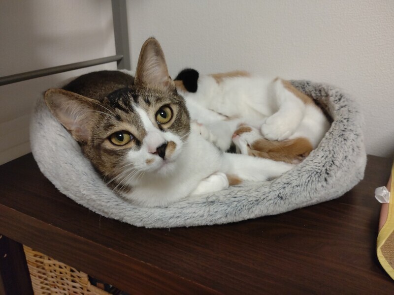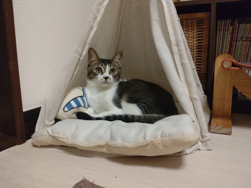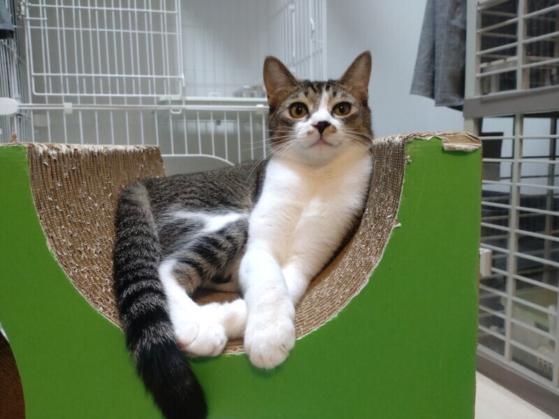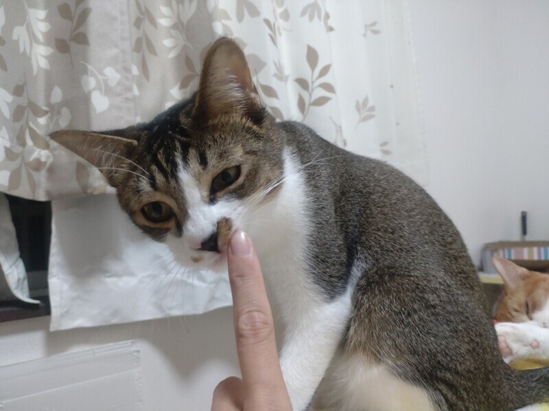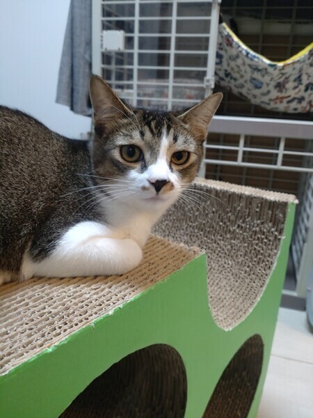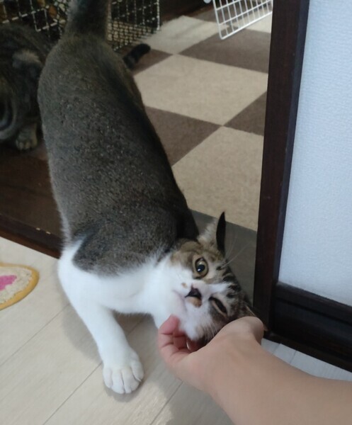 | 特徴(性格など) | 2023.3.15生まれ(推定) 毛色:キジ白 4兄妹の中で一番のビビリん坊。 まだシャー!してしまうことも多いですが、 鳴き声はとってもかわいい男の子です♪ 最近ではナデナデも少しずつさせてくれるようになり、 気持ちよさそうな表情を見せてくれています♡ 抱っこは練習中。 背中に縞模様がない、キジ白さんです。 |