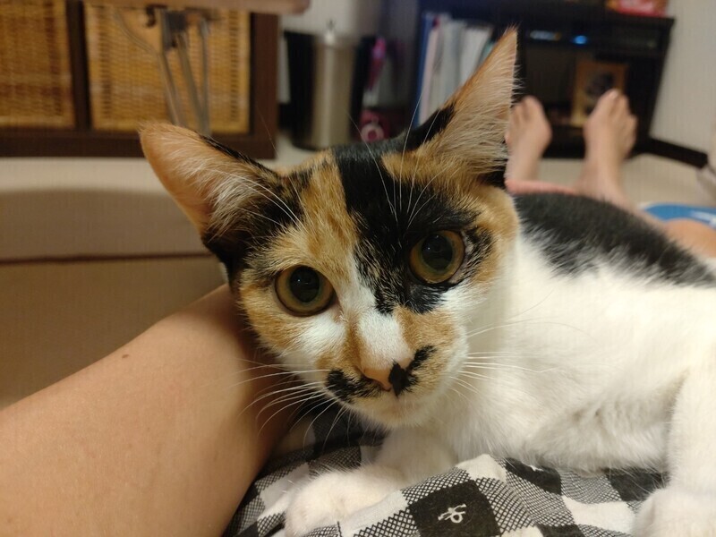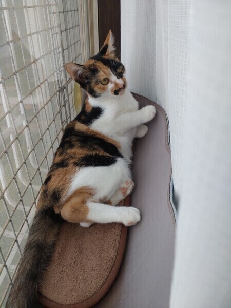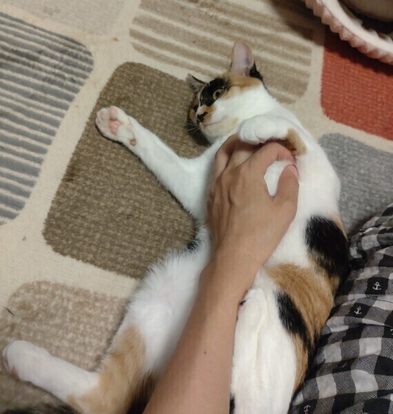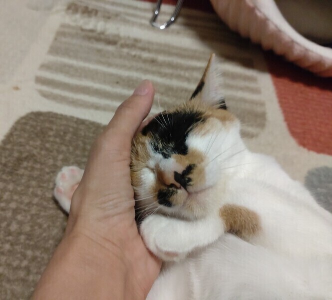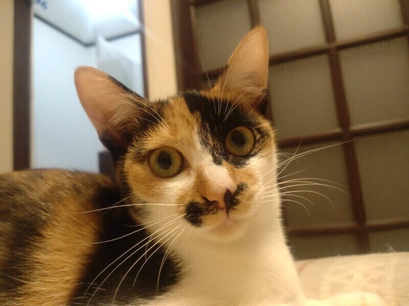 | 特徴(性格など) | 2023.3.15生まれ(推定) 毛色:三毛 4兄妹で一番小柄な三毛猫、カノン。 ツンデレさんでしたが、最近は殆どデレ♡ ナデナデや腰トントンされるのが大好きで、 甘えモードの時は足元をスリスリ、かまってモード突入☆ 好奇心も旺盛で、オモチャでよく遊びます。 保護時、右足踵を剥離骨折していましたが、完治し元気に飛び回っています! |