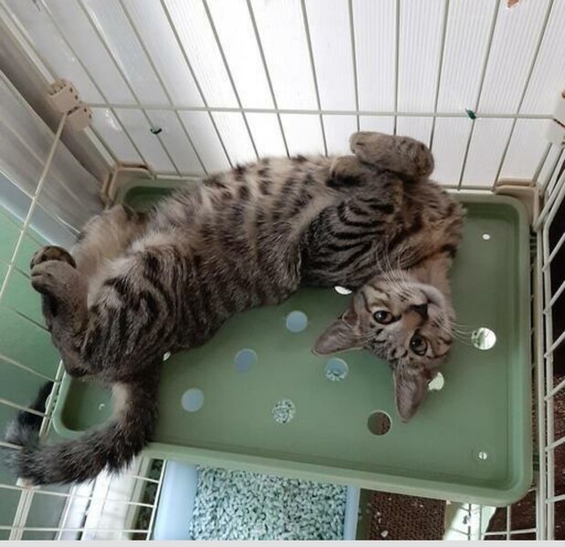 | 特徴(性格など) | キジトラの男の子です まだまだ人馴れしておらず イカ耳で威嚇されたりしますが ときたまデレて、写真のような ポーズをとってくれますが 撫でようと思った瞬間、威嚇されます 警戒心が強いです |