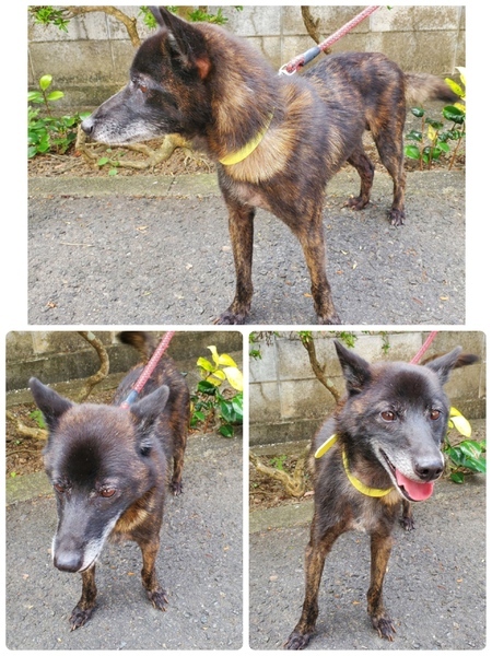 | 特徴(性格など) | ご覧いただきありがとうございます! ⭐【 ①〜⑰のアンケート】にお答え頂けない方、アンケート内容が曖昧な方は、譲渡のお話を進めていけない為、お返事は致しかねますので予めご了承くださいませm(_ _)m ⬇️ ↓ ♡小柄な中型、黒茶の綺麗なブリンドル、立ち耳のとーっても可愛い男の子ฅ•ﻌ•ฅ 見た目の推定になりますが5歳位?体重は10キロ無い位、可哀想に非常に痩せていて爪も伸びています( ; ; ) 今までどう生きてきたのか知る由もありませんが( ; ; )来た当初は無理もありませんがちょっと怖がっていて初めての人、知らない人にやや警戒する様子でしたが今では環境にも慣れてきて人懐こく愛嬌たっぷりで尻尾フリフリ?撫でて〜出して〜と健気に何度も檻の隙間から手を出して必死に甘えてきます。 無駄吠えもせず(出してほしくてヒンヒン鳴いたりはしていますが(;_;) 寂しいし出してほしいに決まってますからこれも無理は無いと思います…)他犬に威嚇もしません。 そして、未去勢ですが何故か片足を上げずにお座り女の子スタイルでオシッコをします(^。^) 小さめでマンションでも飼育しやすいこじんりサイズのワンちゃんです。 ◎痩せているので今は毎日2回、ご寄付で送っていただいた栄養価の高い子犬用フード(ネイティブドッグフード パピー)とデビフ缶詰を食べさせています。ジュレやレトルトパウチも送っていただいたのでこれからお痩せじゃなくなるでしょう♡ 綺麗にブラッシング、シャンプーをして栄養をつけたらもっと凛々しい美犬クンになる事でしょう(^O^)/ 優しい職員さん方が怖くないよ、今度こそは幸せになれます様にと毎日触れ合いながら、一生懸命にお世話してくださっています。 満足にお散歩もしてもらっていなかったような印象で職員さんが連れ出してくれるお散歩はとても嬉し楽しそう♪嬉しさや興奮からなのか?マウンティングしたりします(^^;; https://poppet.fun/article/5741 リードの引きは無く、小柄ですし問題無く制御出来ます。 ※ですが、急な物音や知らない場所にビックリして怖がって、咄嗟に逃げようとする可能性も大いにあり得る事だと思いますし、その時の力、引きの強さも想定し、突然の走り出しや高い塀や壁・柵の飛び越え・急な方向転換や首を振って後退りからの首輪抜け、胴輪抜けにはご用心です!! まだ呼び戻しも覚えていないので、もし逃がしてしまったらピューっと走って行ってしまうかもしれません!(>_<) 特にこの子は怖がりな面もあり、すばしっこく逃げようとしたりもするので要注意で、もし逃がしたらもう捕まえられない!という位にお考えくださいm(_ _)m ※繰り返しになりますがどんな子であっても、慣れてきても、常に、脱走・逃走には充分な注意と最大限の配慮をお願いしております! この子のペースや体力をみながら、躾や毎日朝晩のお散歩、トイレなど必要な運動の時間をしっかり取ることの出来るご家庭、 譲渡後には早急な病院受診が可能なご家庭を希望しておりますm(_ _)m 捨てられたのでしょうか、迷子でしょうか。 何故ここに居なければならないのでしょう。 人間よりはるかに短い犬生なのに。 何故大切な家族を直ぐに探さないのか、 何故最後の時まで愛せないのでしょうか… 保護時、首輪や胴輪などは何もついていませんでした。写真の首輪は管理所でつけた物です。 言葉を持たない大事な家族を守る為に首輪、胴輪に迷子札・鑑札を必ずつけて頂きたい、そして、そんな悲しい状況のままでいたより保護されて良かったと考え、この子に幸せを、温かい本当の本物の家族を見つけたいと願っております⭐︎⭐︎ 人間が焦らずにゆっくり見守りながら、愛情を持って接し、しっかりとお散歩にも連れ出して行けば、この子はきっと新しい家庭に馴染んでいけると、本当は思い切り甘えて目一杯遊んでほしいのだと思います。 辛かったであろう過去があるという点も踏まえ、人は怖くないんだよと、ずっと人を信じてくれる様に、広い心でドンとこい^_^と仰って頂ける方、この子をこの先も尻尾フリフリ♪で、ニコニコの笑顔にしてくださる方、いらっしゃいませんか? どうぞ宜しくお願い申し上げますm(_ _)m ⭐️必ず室内飼育で、譲渡後速やかに病院受診、健康診断、(血液検査、尿便検査、ノミダニ・フィラリア予防や爪切り、シャンプー等)混合ワクチン、去勢手術をする事が可能な、なるべくお留守番が少ない、沢山優しくスキンシップやコミュニケーションで触れ合っていただけるご家庭。 ⭐️フィラリア予防実績、混合ワクチン、狂犬病予防接種の有無も不明です。 フィラリア陽性の可能性も有り得る事となります(>_<) ⭐️室内でのトイレの躾も1からとなります。 未去勢ですが片足を上げずに女の子スタイルで排尿します。 何かと手がかかり大変ですが(広めのトイレスペースやペットシート、マナーベルトを用意など)覚悟と根気・理解で受け入れて下さる方m(_ _)m ※譲渡後はお早めの健康診断、去勢手術、