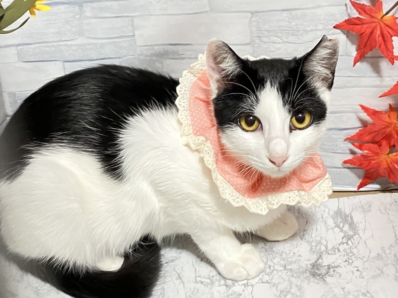 | 里親募集する理由 | 7月頃、民家の庭に現れご飯をもらっていました。 そこで出会ったマーシャルと寄り添い、住人に可愛がられながら外で過ごしていました。 少し大きくなり、外には雄もいる事から妊娠する前に避妊手術の相談があり、リリース予定でしたがあまりに可愛い子でしたので、そのまま保護する事にしました。 |