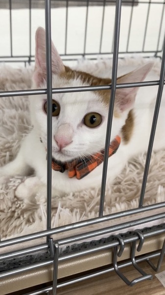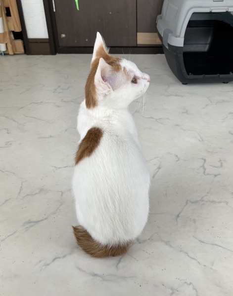 | 特徴(性格など) | 保護してすぐは、右側にあるタレ眉模様が可愛さを増し増しにして女の子の様でしたが 少し成長して、イケメン男子になってきました☆彡 しっぽは幸運のカギしっぽ。 どんな幸せを連れて来てくれるかな? 性格は、天真爛漫。保護部屋の先輩猫さんにとても可愛がられています。 保護した時から撫でるとゴロゴロ♡ 今は遊ぶのが先になって、あまりまったり抱っこしたり出来ませんが、 ゲージの中やキャリーの中ではとっても静かで、病院も大丈夫! 食べるのも大好きで、お皿の外にあるご飯を見つけるとちょっと野性味が溢れます(≧◇≦) |