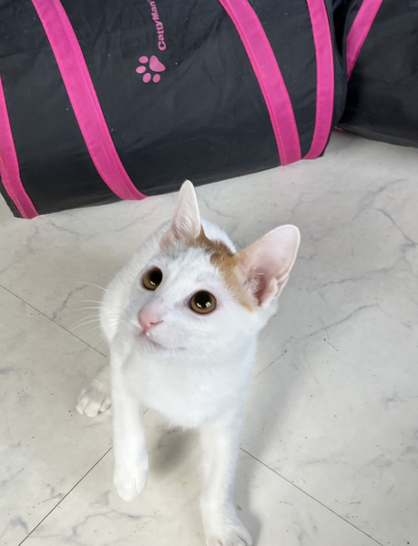 | 里親募集する理由 | ある日突然、お隣のお庭に現れた仔猫ちゃん。 人懐っこい性格と、まだまだとても小さかったので お隣さんの協力のもと、保護しました。 保護部屋の大人の猫さんにも物怖じしません。 親子のように仲良く過ごせています。 猫好き、人好きです♡ まだ仔猫でひとりぼっちになったことがありません。 先住猫さんがいるお家か、お留守番の少ないお家を探しています。 |