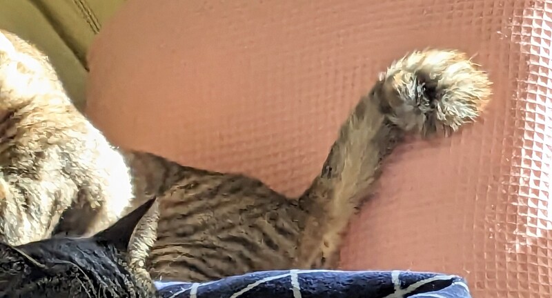 | 特徴(性格など) | 少しビビりさんですがとても美人な顔つきです キジトラの茶色、しっぽはかぎしっぽで可愛いです 全力で遊び、ジャレ棒での大ジャンプは見ものです(*^^*) |