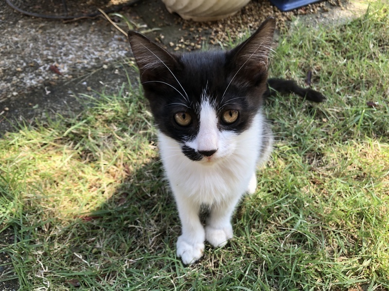 | 特徴(性格など) | 白黒の可愛い女の子♀チャームポイントはお鼻の横の模様。 野良猫ちゃんの子供なのに人懐っこく触らせてくれます。 小さいのにどっしり落ち着いた性格です。 良くおしゃべりしてくれる可愛い子です。 |