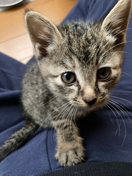 | 特徴(性格など) | とっても甘えん坊のキジトラ猫です。 最初は緊張して、怯えていましたが、すぐにゴロゴロと甘えてくれました。 2日目からは、膝の上で撫でてほしそうにおねだりしていました。 |