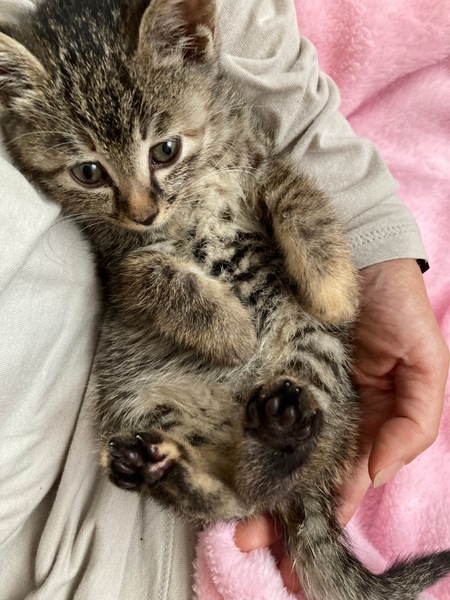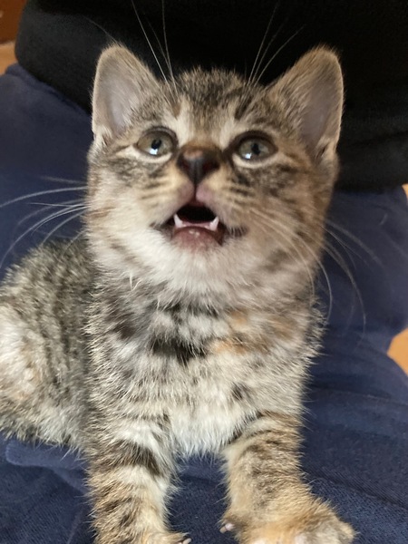 | 里親募集する理由 | 娘の友達から近所で2日前から子猫が鳴いているので、助けてあげてほしいと言われ、預かりました。 4日ほどまえには、親子でいたのを目撃されているので、お母さんとはぐれたようです。 よほど泣き叫んだようで、声が枯れています。 わたしの家は、主人、娘ともに猫アレルギーなので、飼うことができません。 保護した子どもさんの両親が、動物が苦手で家に入れてくれないということで、里親さんを見つけるお手伝いだけでもと思い、預かりました。 なんとか、勇気をだして保護してくれた子どもの願いを叶えてあげたいです。 どなたか、家族として、お迎えしていただけないでしょうか。 よろしくお願いします。 |