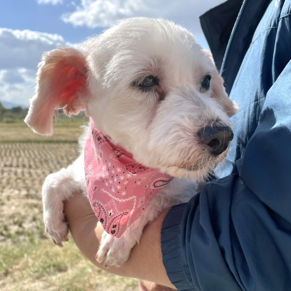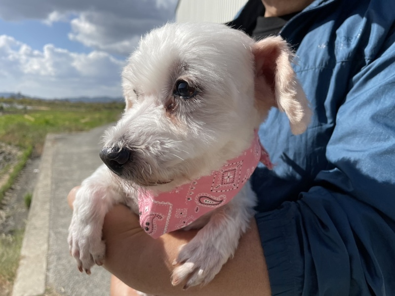 | 特徴(性格など) | マルチーズMIXの女の子、美希(みき)ちゃん。 おっとりした性格で、だっこさせてくれます。 お散歩も大好き。すこし怖がりさんですが、慣れると元気に歩きます。 かわいい美希ちゃんを温かく迎えてくださる方を探しています。 少しでも気になられましたら、お気軽にご連絡くださいね。 ●より迅速に対応させていただくため、差し支えなければ最初のご連絡で、 「お電話番号と大体のご住所」をお書き添えください。 ●シニア世代の方でもご応募可能です。 |