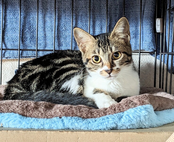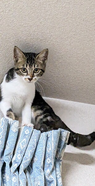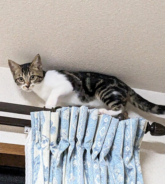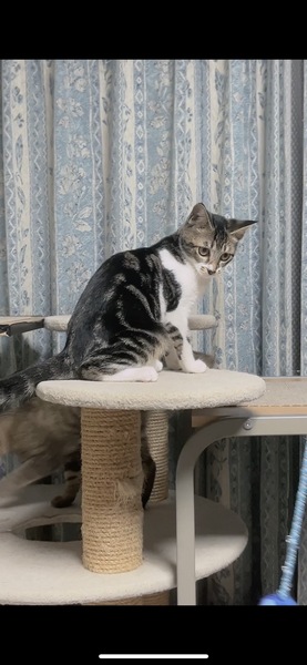 | 特徴(性格など) | アメショー柄と可愛いどろぼうひげが特徴です 少しビビりさんですが、撫ぜるとゴロゴロ言ってくれます とにかく可愛い♡ じゃれ棒で全力で遊びます |