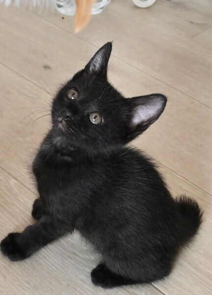 | 特徴(性格など) | 黒くマットな毛艶に 幸運を呼ぶカギ尻尾の子猫ちゃん 仮の名を「玄(げん)」と名付けています。 とってもアクティブなコで飛びついたり走り回って遊ぶのが大好きです。 小さいボール、ダンボールトンネルが特にお気に入りです。^^ お腹が空いたらニャーニャーとアピールし ひとしきり遊んで食べたらコトンと寝ます。 夜もケージの中で朝までぐっすりです。 兄弟のまい(サイト同載中)とは大の仲良しで いつも一緒です。まいは大人しめで甘えたな男のコです。 同じ出立ちですが性格は真逆の兄弟猫ちゃんたち。 ぜひ2匹でお迎え入れいただき、違った個性を楽しみませんか。 ご応募お待ちしております。 宜しくお願いいたします。 ◆食事:カリカリ食べれます。偏食なし ◆排泄:トイレ排泄完璧 ◆性格:明るい、温厚、アクティブ、身体能力が高い ◆あそび:ジャンプ、飛びつき、走り回る遊びが好き ◆留守番:兄弟と一緒なら長時間のお留守も可能です(9時間以内) ◆夜間の様子:静かにぐっすり眠っています ◆その他: *子どもがいるご家族:中学生以上可(子猫をおもちゃ代わりにするようなご年齢のお子様は不可) *完全室内飼いでお願いいたします。 【【子猫から飼うならぜひ二匹飼いをオススメします!】】 ♡子猫同士で遊びを通じながら社会性を身につけることができます。 ♡遊び相手が居るのでお留守番も上手にできるようになります。 ♡仲睦まじい猫たちの姿に飼主さんも癒され倍増!幸せホルモンに包まれます♪ 猫の二匹飼いは思うほど大変ではありません。 子猫からお迎えするなら、ぜひ二匹飼いもご検討ください(^-^) ♡日々の様子はインスタグラム@enn1105にアップしていますのでぜひご覧ください。 ♡毎週末•祝日に譲渡会(Enn結び会)を行っておりますので、ご応募に迷っておられる方は ぜひ一度実際の玄くんに会いに来てやってくださいね。 【健康状態】 エイズ、白血病なし |