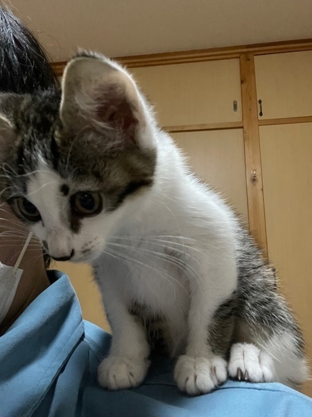 | 特徴(性格など) | 人懐っこい性格で寝る時は必ず腕枕です。 また元気に走り回り鳴き声も可愛いキジ白ちゃんです。 |