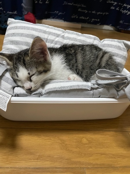 | 里親募集する理由 | 元々野良で2日間1匹で行動、声が枯れるまで鳴き続け周囲に親猫もいなかったために保護。自身が仕事で子猫を見てあげる時間が短いため、自分より長い時間子猫と一緒にいられる方を希望しています。 | ||