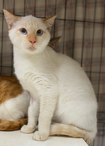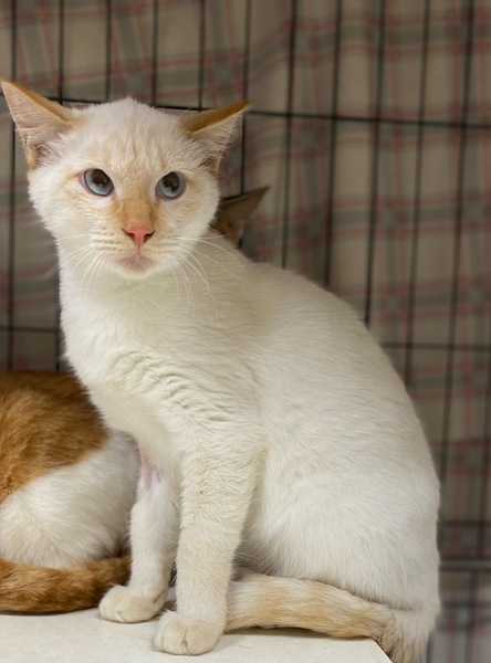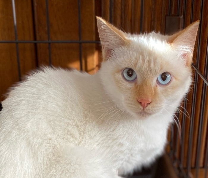 | 特徴(性格など) | ブルーアイの少しベージュが混じった部分がある男の子です。 臆病なタイプで、ゆっくり馴らして頂く必要があると思いますが、他の猫とも仲良くして、おとなしいです。 |