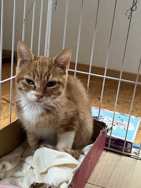 | 特徴(性格など) | 3〜4ヶ月茶白オスです。 やんちゃで甘えん坊です。 |