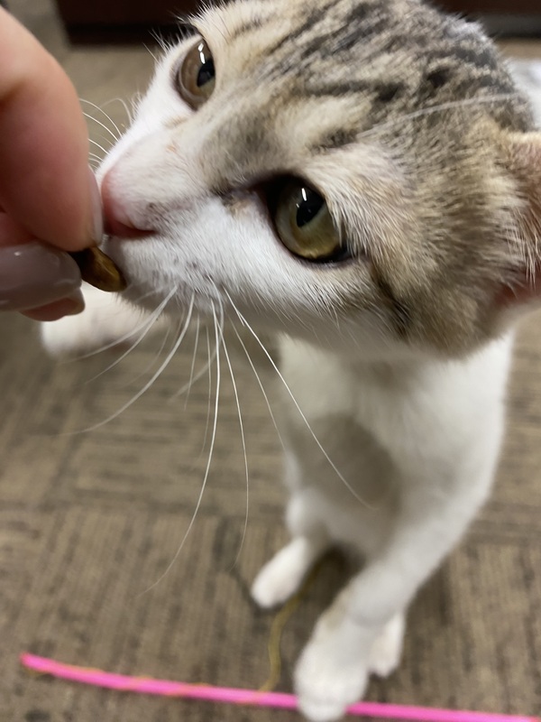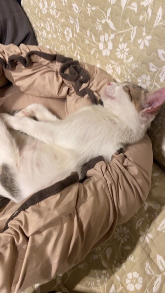 | 里親募集する理由 | 生後一カ月頃、職場近くで体が何倍もある大きな地域猫に威嚇していた所を緊急保護したした! 生後二ヶ月頃、里親様が見つかり新しお家にいったのですが、3日前に猫カビの為に返って来ました。 生後三ヶ月、現在に至ります。 現在猫カビ治療中で、完治には約2週間かかる予定です。 完治後の譲渡となります。 |