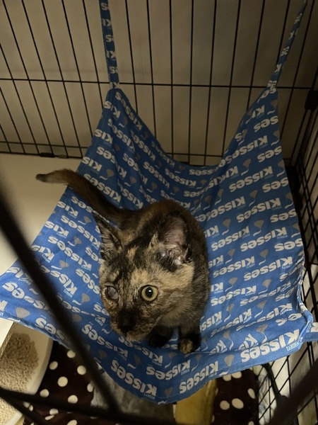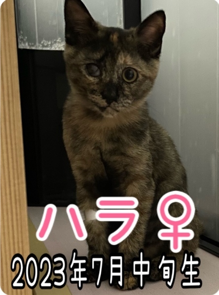| 特徴(性格など) | サビトラ 人見知りがなく甘えっ子です。 保護時に右目が肉芽腫で点眼投薬しましたが、少し白濁が残っています。 エイズ・白血病共に陰性 |