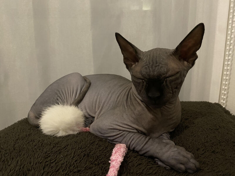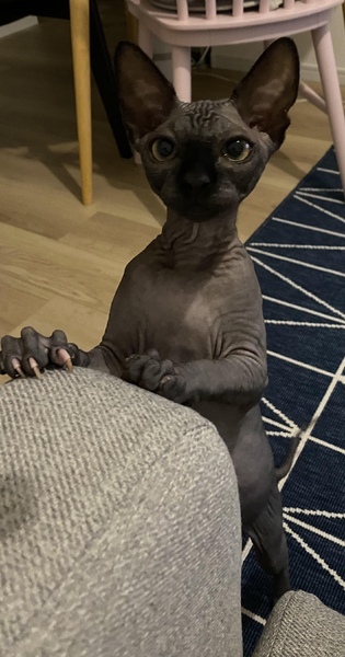 | 特徴(性格など) | エルフキャットという血統書付きの猫ちゃんです。 とても人懐っこくて、遊ぶのが大好きで、撫でたり抱っこしてもらったりも好きです。 やんちゃで棒や猫じゃらしでよく遊びます。 |