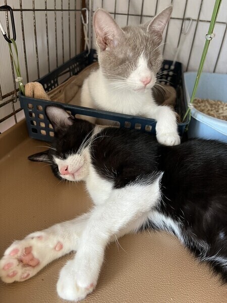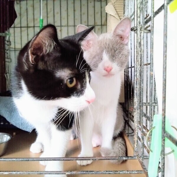 | 特徴(性格など) | ◆アッシュ-マルコちゃん 盲目でも元気な懐っこい子猫 ●月齢の小さな子猫は、以下の条件についてご了承の上で応募をご検討下さい。 ◆お留守番の少ないご家族を希望します。 ◆2匹でお迎えくださるご家族を優先いたします。 ◆小さなお子様のいるご家庭は状況によりお断りする場合がございます。 ◆高齢者のみのご家族からの子猫のお申し込みはお受けしていません。 ○沖縄県内にて保護しました。 ○生後5ヶ月くらい(2023年6月生まれ)のグレー白の女の子です。 ○しっぽはまっすぐで先が鍵になっています。 ○とっても人懐っこい甘えん坊さんです。 ○両眼摘出をしています。 ○目が見えなくても物怖じする様子もなく、とっても逞しくてハートの強い子です。 ○現在一緒に来た「しろくろさんかくん」と同じケージで生活しています。たまにうんちが場外にあることもありますが、概ねトイレはちゃんと使えていると思われます。 ○元気にすくすく育っています。 ★ワクチン1回済み。 ★猫エイズ、猫白血病ともに陰性。 ★不妊手術は成長と体調をみて近日中に実施予定です。 ★両眼摘出をしていますが、日常生活には支障ありません。 ○YouTubeにも動画をあげています。こちらもご覧下さい。 「アッシュ-マルコ」「しろくろさんかくん」その1 https://youtube.com/shorts/NcdRYLTh1G0 「アッシュ-マルコ」「しろくろさんかくん」その2 https://youtube.com/shorts/sroLPUTZz80 ○11/19(日)開催の譲渡会に参加予定!下の要項をお読みいただき、ぜひ会いに来てください♪ ☆★☆★☆★☆★☆★☆★☆★☆★☆★☆★☆★☆★☆★☆★☆★☆★☆★☆★☆ ~11月19日(日)市ヶ尾にて譲渡会開催!~ ◎場所・・「東急ドエル市ヶ尾プラーザビル2階集会場」 神奈川県横浜市青葉区市ヶ尾町1154-2 田園都市線「市ヶ尾」駅西口より徒歩約2分 ◎日程・・11月19日(日)(雨天決行) ◎時間・・13時から16時(受付は15時30分まで) (会場に利用可能な駐車場はございません。近隣のコインパーキングをご利用ください。) *12時45分より入場ご案内を致します。それより早く来て並ぶ事はご遠慮下さい。 *参加の際は、アルコール消毒のご協力をお願いいたします。 *混雑状況により、入場制限をさせていただく場合がございます。 ※参加予定の犬猫は体調により参加できない場合があります。ご了承ください。 ☆★☆★☆★☆★☆★☆★☆★☆★☆★☆★☆★☆★☆★☆★☆★☆★☆★☆★☆ |