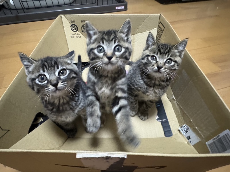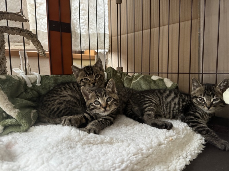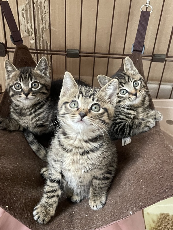 | 特徴(性格など) | とっても可愛い3兄妹です よく食べ元気いっぱいです。仔猫らしく兄妹で走り回りイタズラしています |