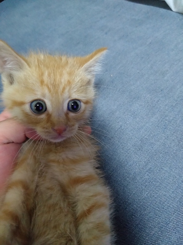 | 里親募集する理由 | 母猫とはぐれて鳴いていたのを保護しました。まだ2ヶ月ないくらいのキトンブルーの茶トラちゃんです。 | ||