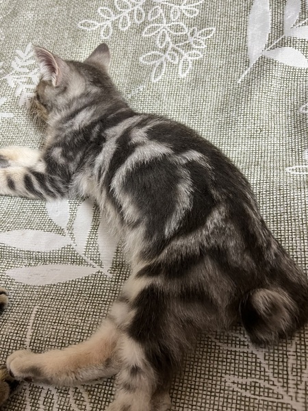 | 特徴(性格など) | アメショっぽい柄の雑種です。 好奇心旺盛で元気な男の子です。 人慣れしていて撫でるとゴロゴロいいます。 |